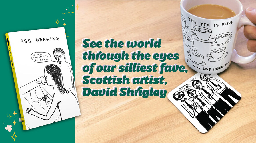 Acclaimed artist David Shrigley’s sharp, deadpan drawings often feel like snippets from overheard conversations. His work is filled with a deliberately flat perspective, capturing everyday life from a quirky viewpoint.