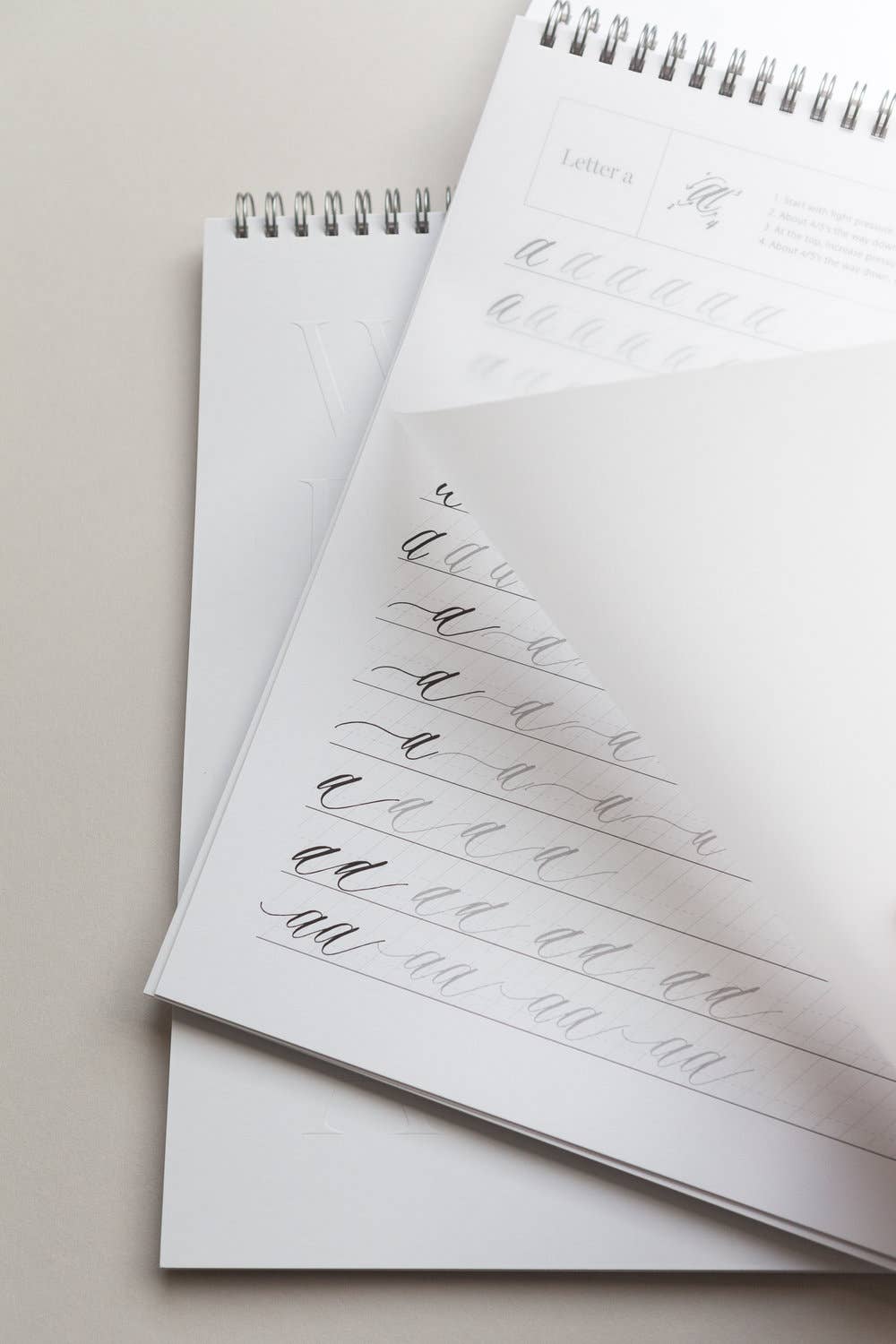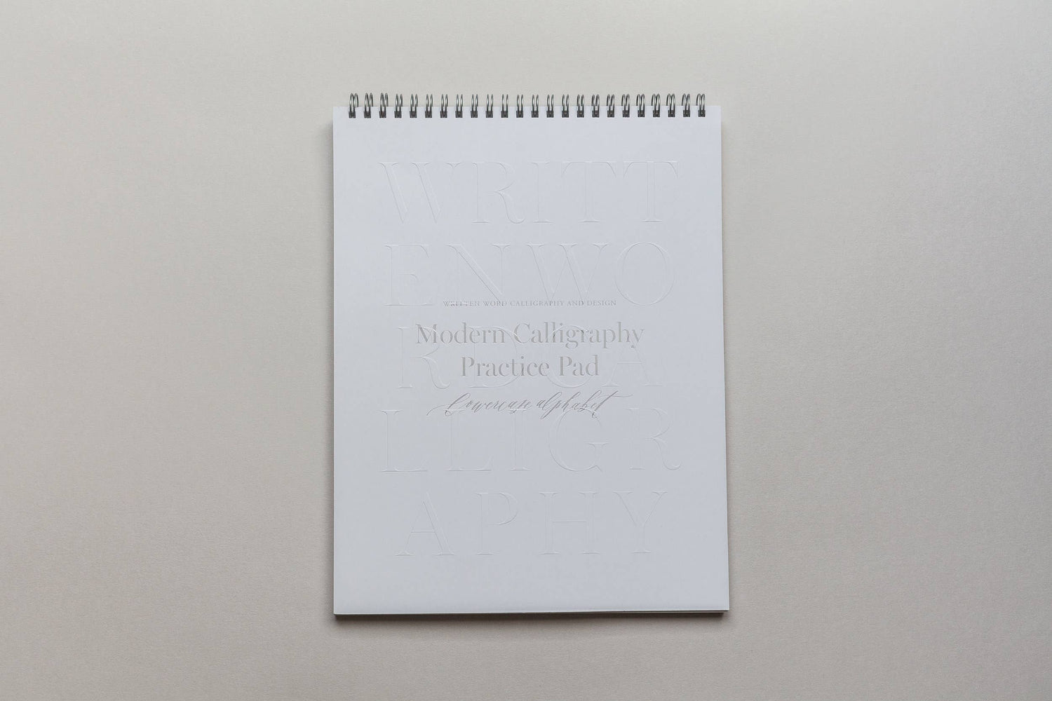 A 65-paged practice pad for learning and developing your own modern calligraphy style. This practice pad covers the basic tools and how-to's, practice drills, lowercase alphabet, connecting letters into words, and words into phrases.