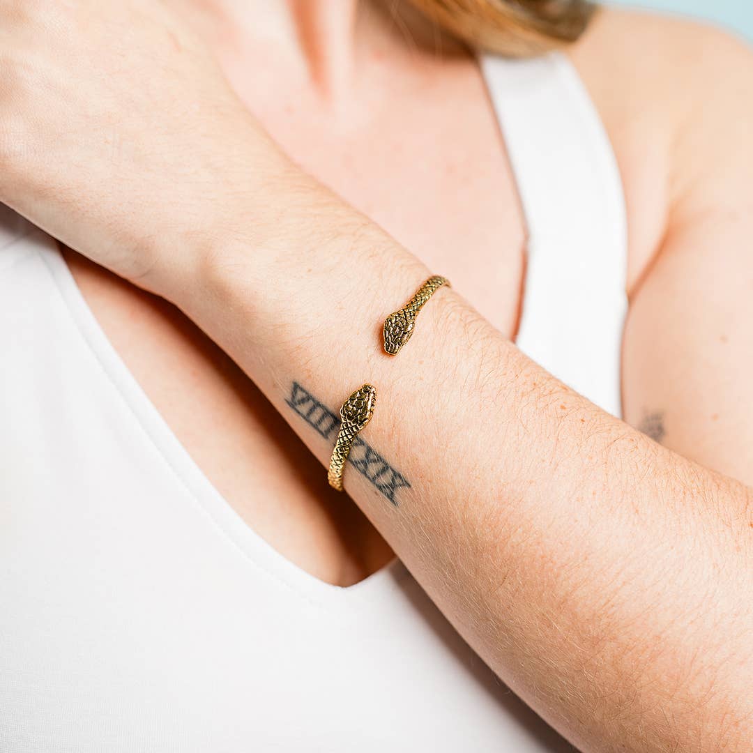 Gold Snake Cuff Bracelet is backordered and will ship as soon as it is back in stock.