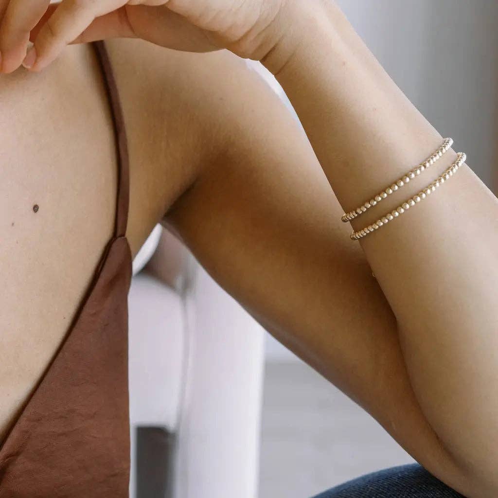 Tiny beads are strung along our classic thin chain, creating a bracelet that’s both delicate and versatile. Lightweight and comfortable, it’s the kind of piece you can wear every day - beautiful solo or layered with your favorite bracelets for added texture and shine.