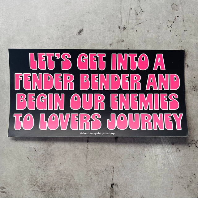 Enemies to Lovers Fender Bender Bumper Sticker is backordered and will ship as soon as it is back in stock.