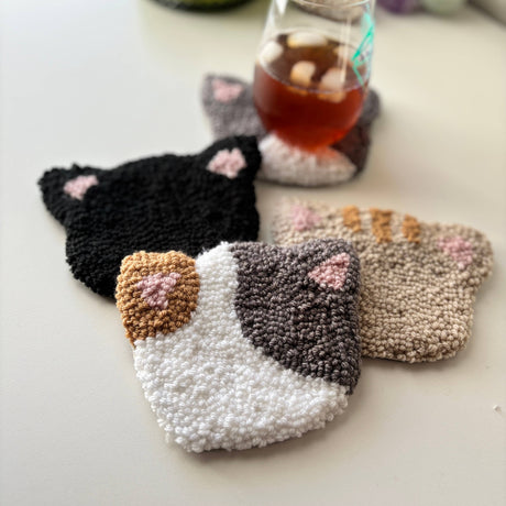 Patchwork Cat Coaster Hand Tufted Mug Rug