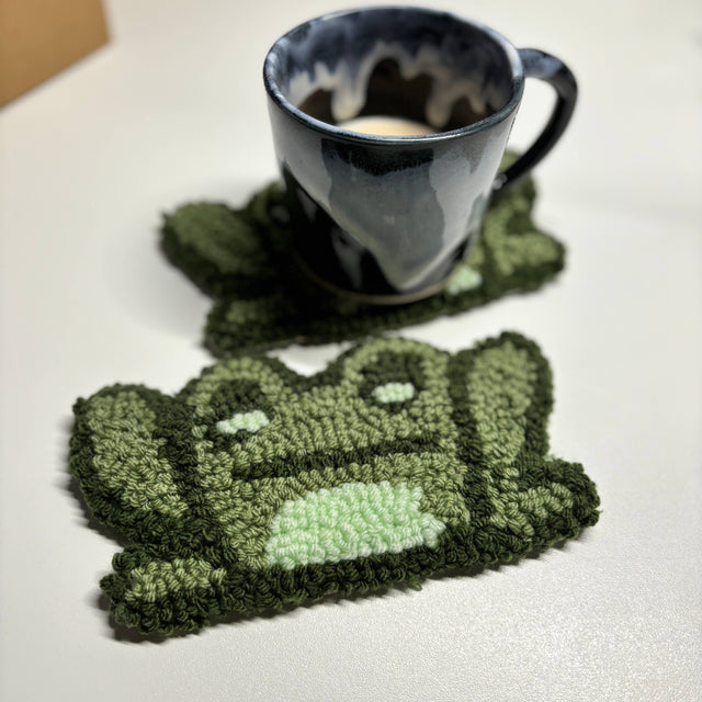 Handmade Frog Mug Rug Coaster is backordered and will ship as soon as it is back in stock.