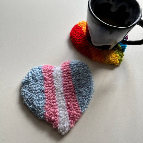 Trans Pride Heart Hand-Tufted Punch Needle Mug Rug Coaster