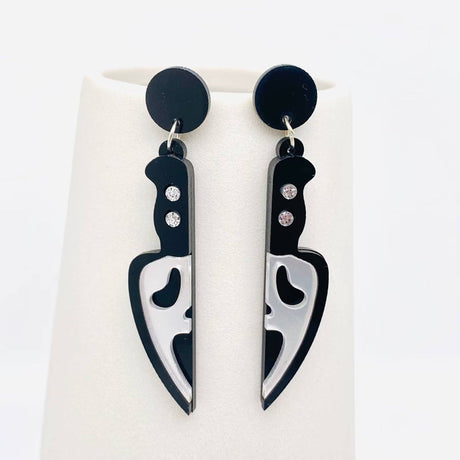 Regular price $5.00Unit price /UnavailableLow stock (4 units)Halloween Acrylic Horror Skull Knife Shape Post Earrings