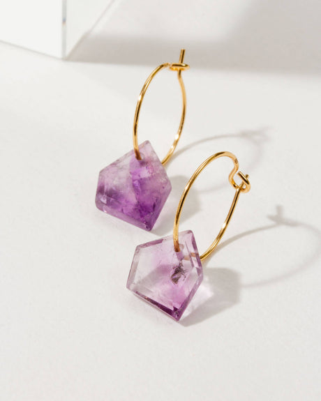 Regular price $22.00Unit price /UnavailableVery low stock (2 units)14Kt Sterling Silver Geometry Mini Hoop Earrings- Amethyst