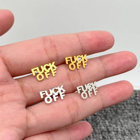 Regular price $7.00Unit price /UnavailableLow stock (4 units)'FUCK OFF' Stainless Steel Ear Studs