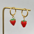 Strawberry Charm 18K Gold Plated SS Huggie Earrings - FGS