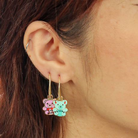 Regular price $12.00Unit price /UnavailableVery low stock (2 units)Cry Baby Psycho Teddies Earrings - Gold Statement Jewelry