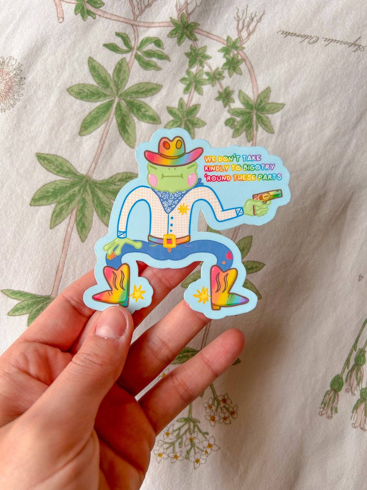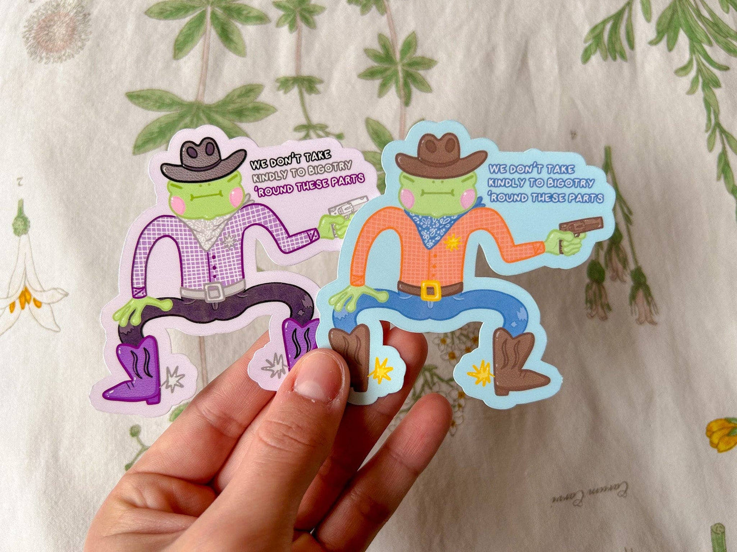 Pride Cowboy Frogs | We Don't Take Kindly to Bigotry Sticker