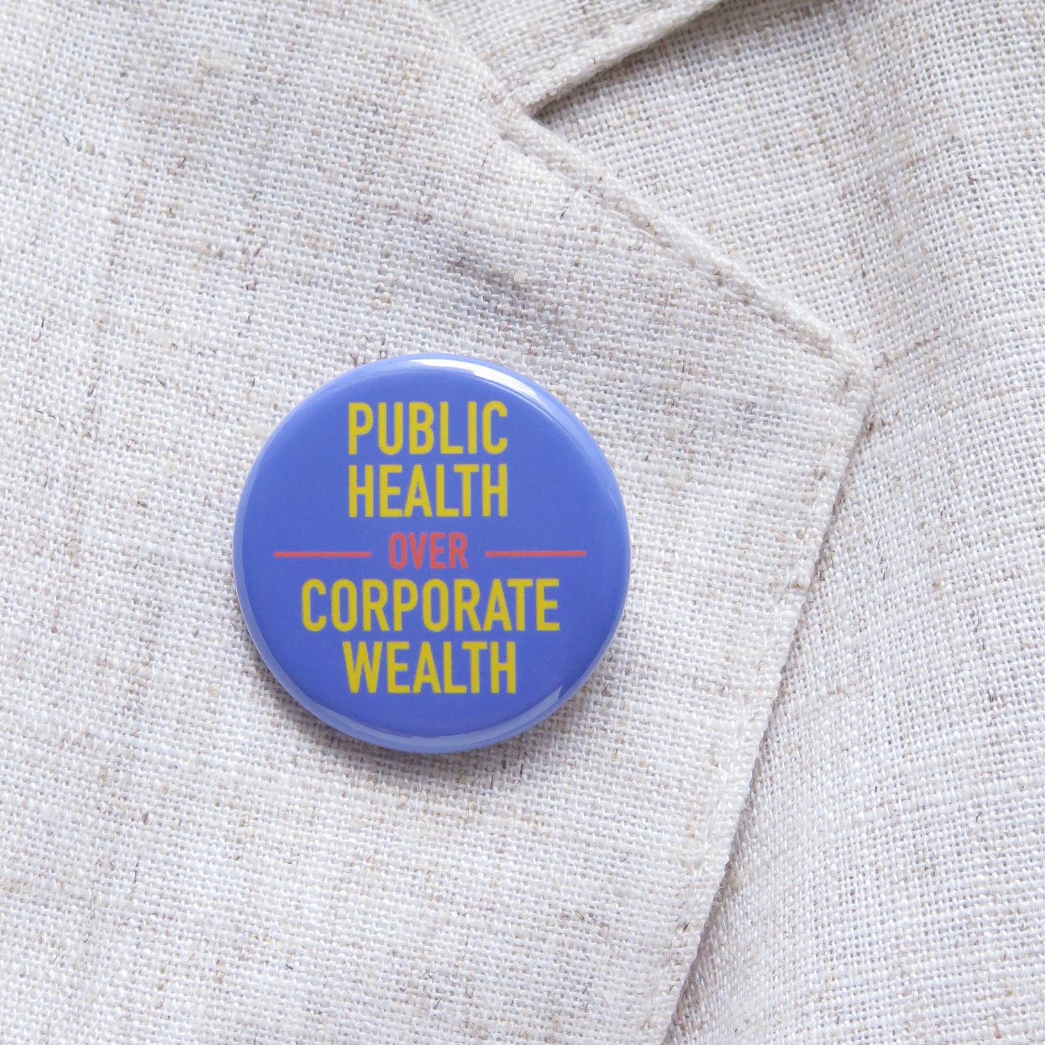PUBLIC HEALTH OVER CORPORATE WEALTH Pin 1.25" Button is backordered and will ship as soon as it is back in stock.