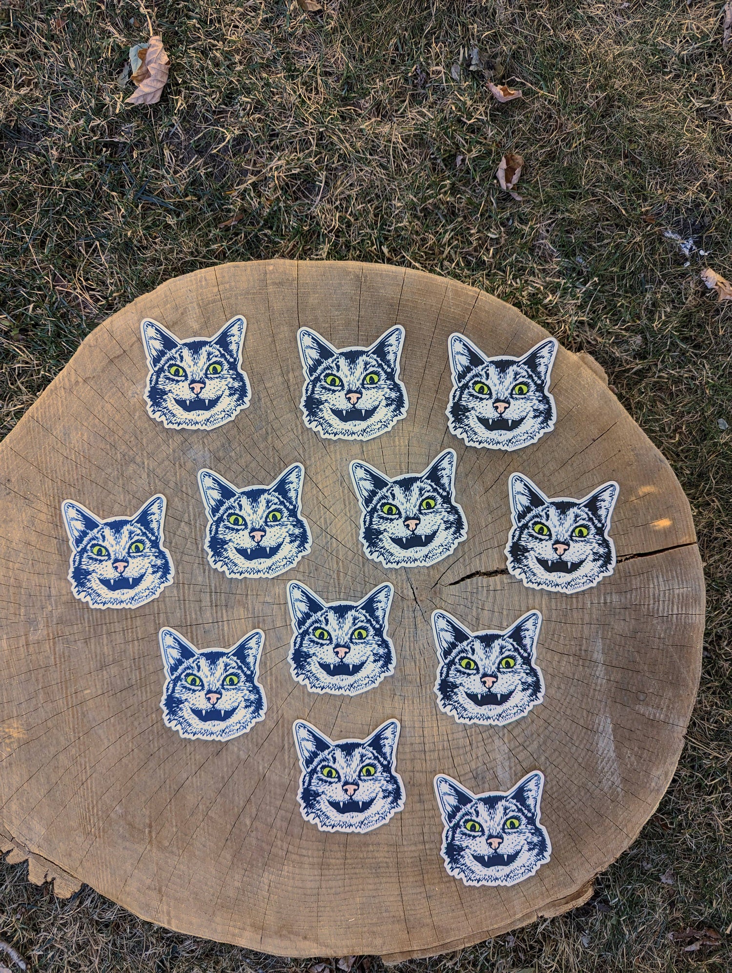 a smiling cat face sticker illustrated by ilikesara / Sara Schalliol-Hodge