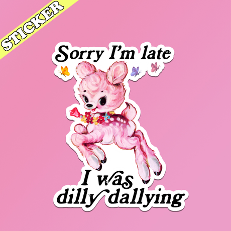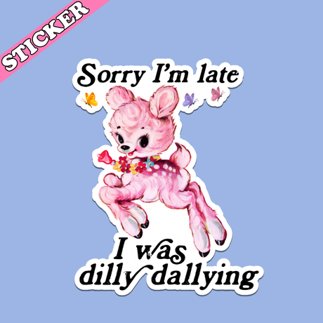 Regular price $5.00Unit price /Unavailable Sorry I’m Late I Was Dilly Dallying Sticker, Funny Kitsch