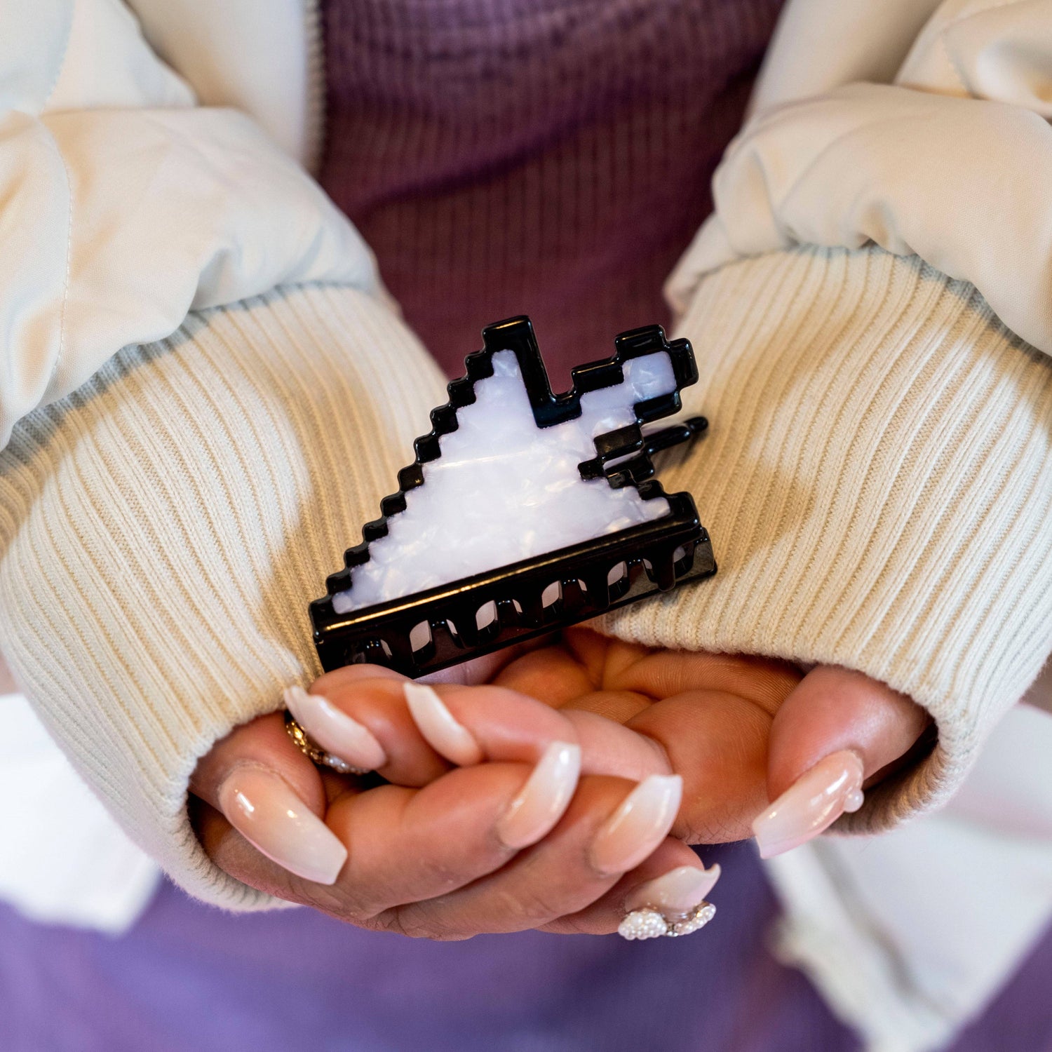 Customers will be lined up at your door for my Hair Claws- no joke! Super viral on social media with over 30M views and constant sold out preorders. Such high demand that we don't hold on to stock for longer than a few days. Easily recognizable and a great gift. Draw customers into your store to check out these hair claws only usually bought/available online. This Career Clip is perfect for computer scientists, web designers, chronically online girlies, world wide web surfers, and more!