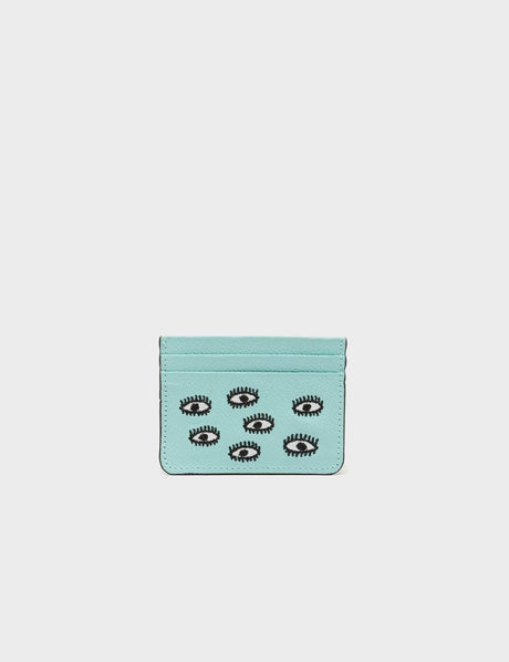 Filium Eggshell Blue Leather Cardholder - All Over Eyes Embroidery