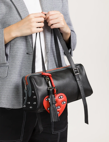 Esther Black Satchel Mini Bag - All Over Eyes Embroidery