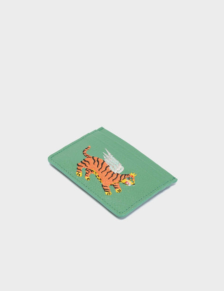 Filium Basil Green Leather Cardholder - Winged Tiger Embroidery