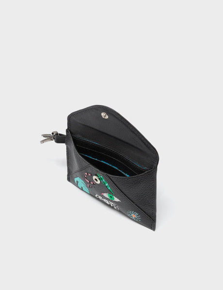 Fausto Black Leather Zip-around Cardholder - Tiger and Snake Design