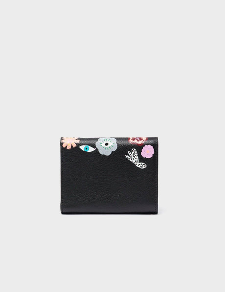 Fiona Black Leather Wallet - Floral Fall Embroidery