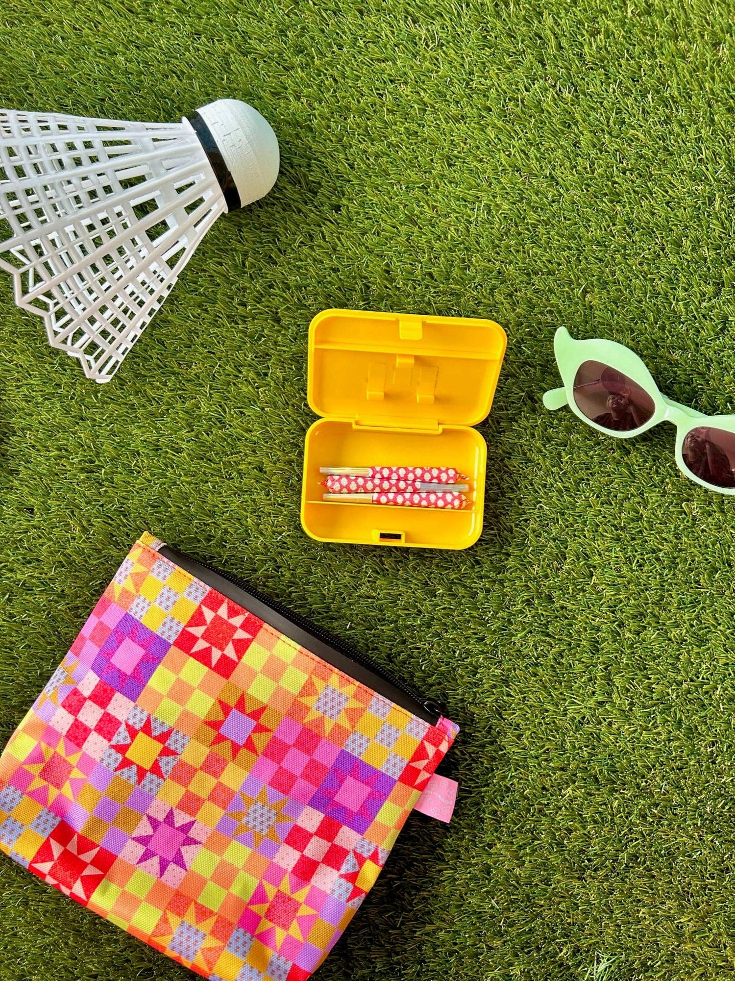 Yeah I love "gardening"! I love my greens! I love herbs! I love spending time outside doing very natural things. Obviously. Intended to store *cough* oregano herbs *cough* and a small book of papers, this divided container is now my everything all of the time (I genuinely have never gotten so much use out of any of my products before this one!) This container is cute, but it is also super convenient - it is slim enough to fit into jacket pockets and purses easy peasy. Measures 4x3x1 inches. Great for storing edibles and joints on the go (it even fits a Leune one hitter perfectly!) Also a portable, non-squishable container for: gum, starbursts, bobby pins, medication, jewelry, pom pom balls, dog treats, a lighter, tums, erasers, charms, tiny treasures, hopes and dreams
