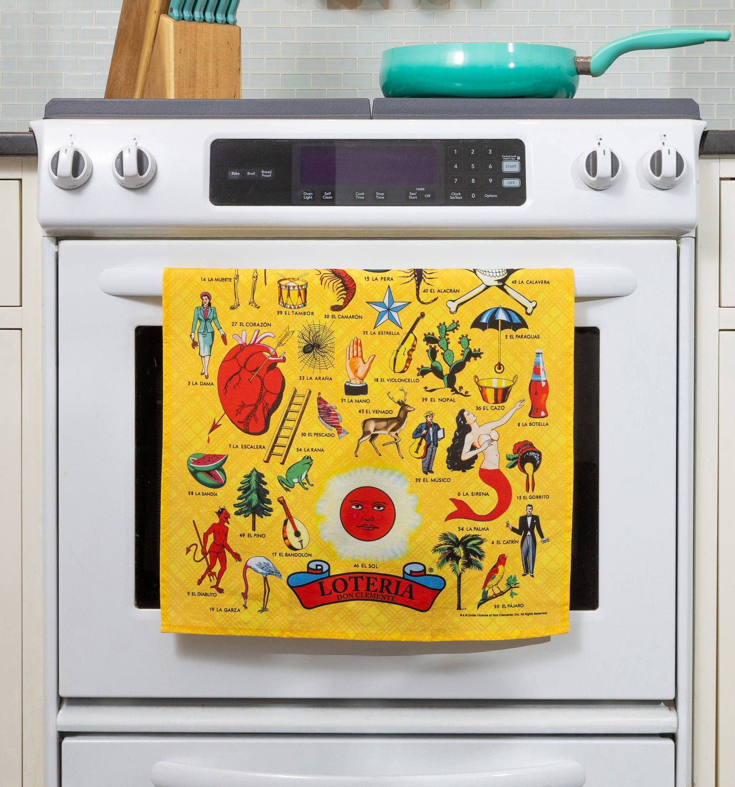 Steeped in the culture and history of Mexico, this dish towel will remind you of recipes handed down, meals with family and friends, and when the time comes to clear the table for a game of Lotería.