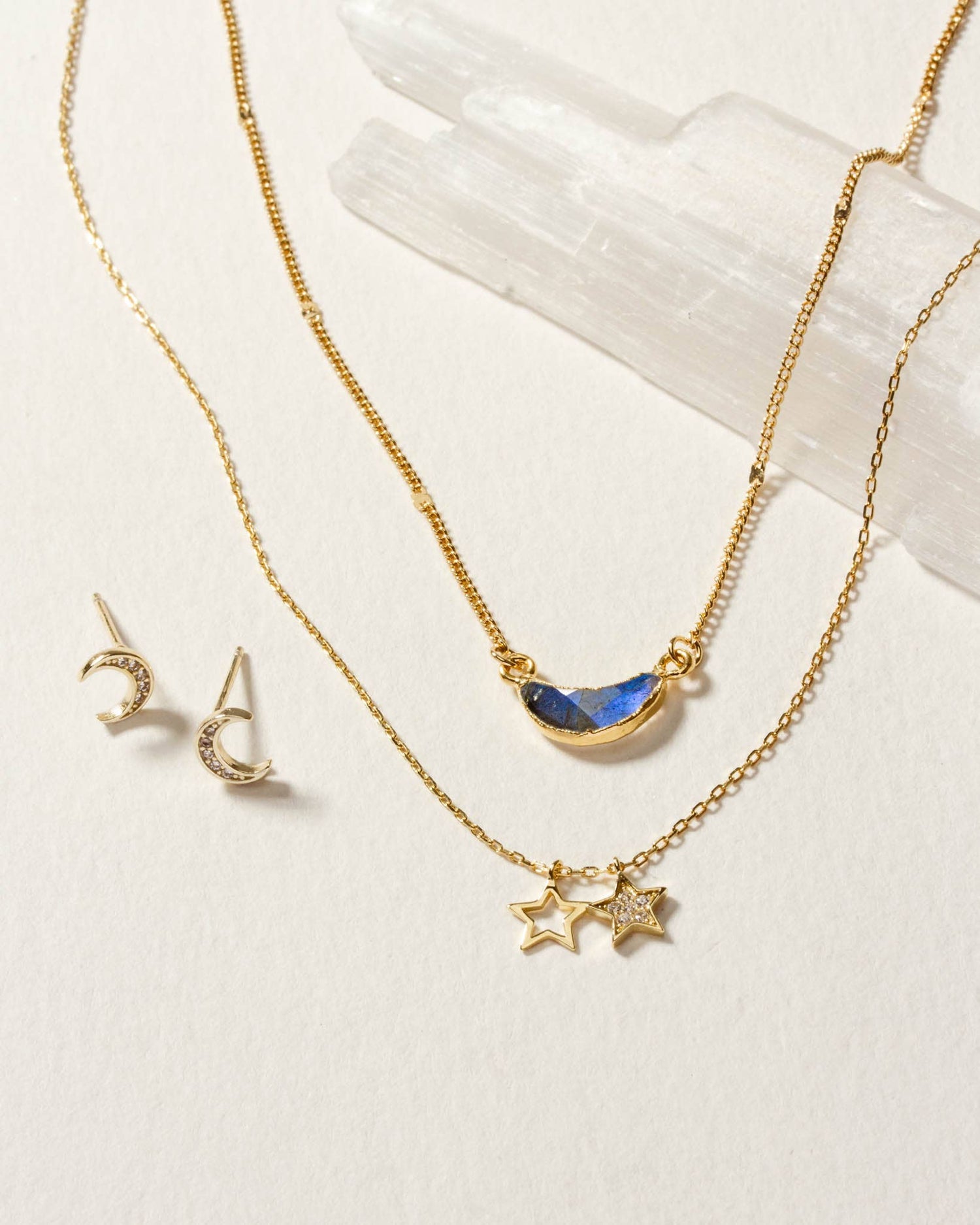 Moon and Stars Necklace Set- Labradorite