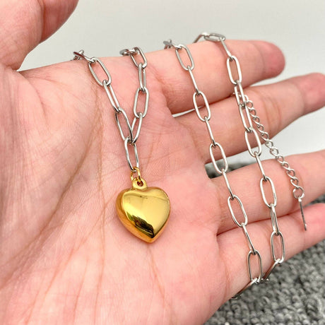 Regular price $13.49Unit price /Unavailable 18K Gold Plated Heart Charm Steel Chain Paperclip Chain Necklace