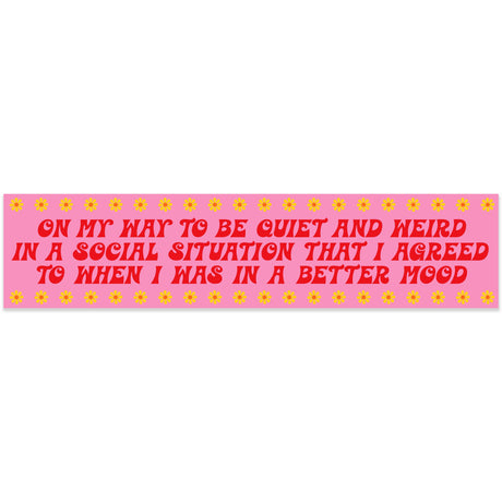Regular price $6.00Unit price /UnavailableVery low stock (2 units)On My Way To Be Quiet & Weird Social Situation Vinyl Sticker
