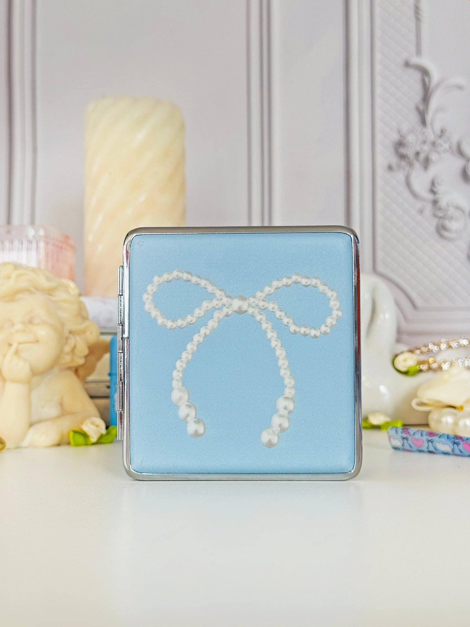 A bow-utiful and puurfect cig case has arrived! We 💙 bows and cats, so we decided to feature both on this ADORABLE cig case! This cig case is perf for holding cigs or prerolls. We love this case because it's a little slimmer than our classic boxy glittery pink version and being that it's not see thru, it's a bit more discreet! Also perfect for cash, cards, lip gloss, whatever else fits!