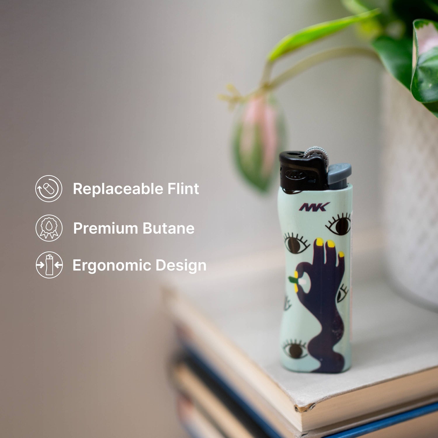 MK Lighter 9G Flint Strike Refillable Lighters Plant-50PC