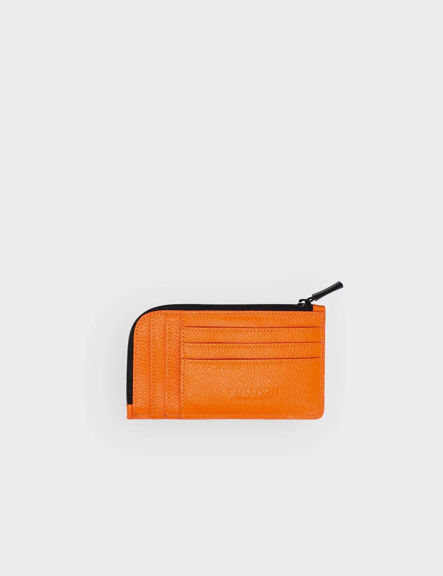 Fausto Neon Orange Leather Zip-around Cardholder - All Over Eyes Embroidery