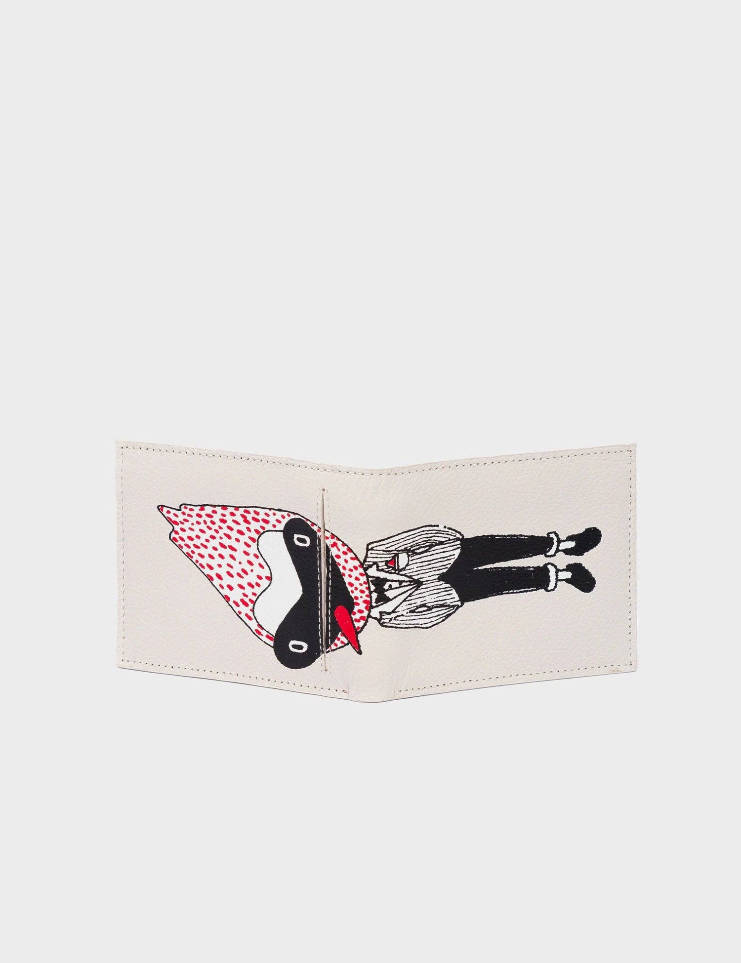 Felicia Cream Leather Bifold Wallet - Preppy Bird Print