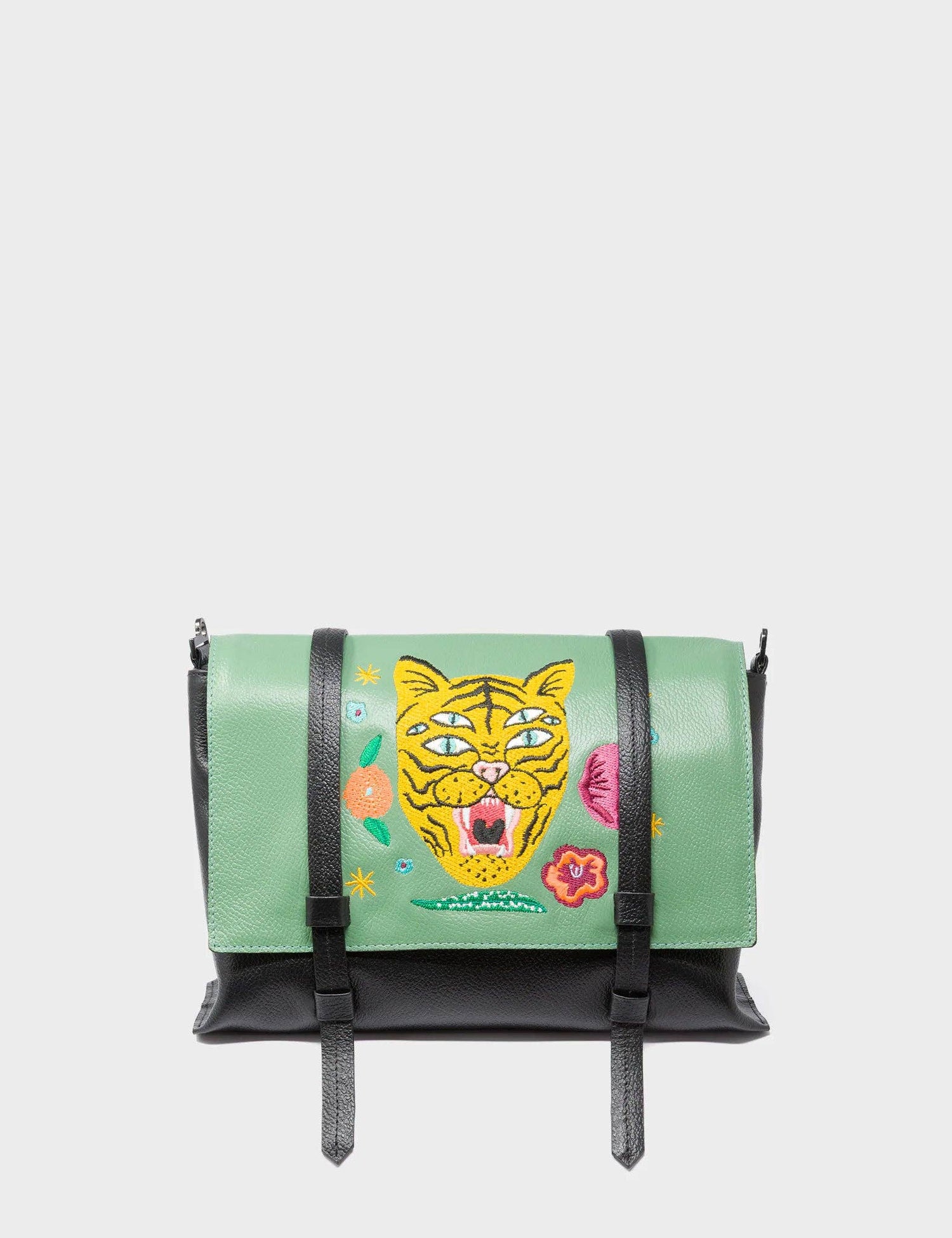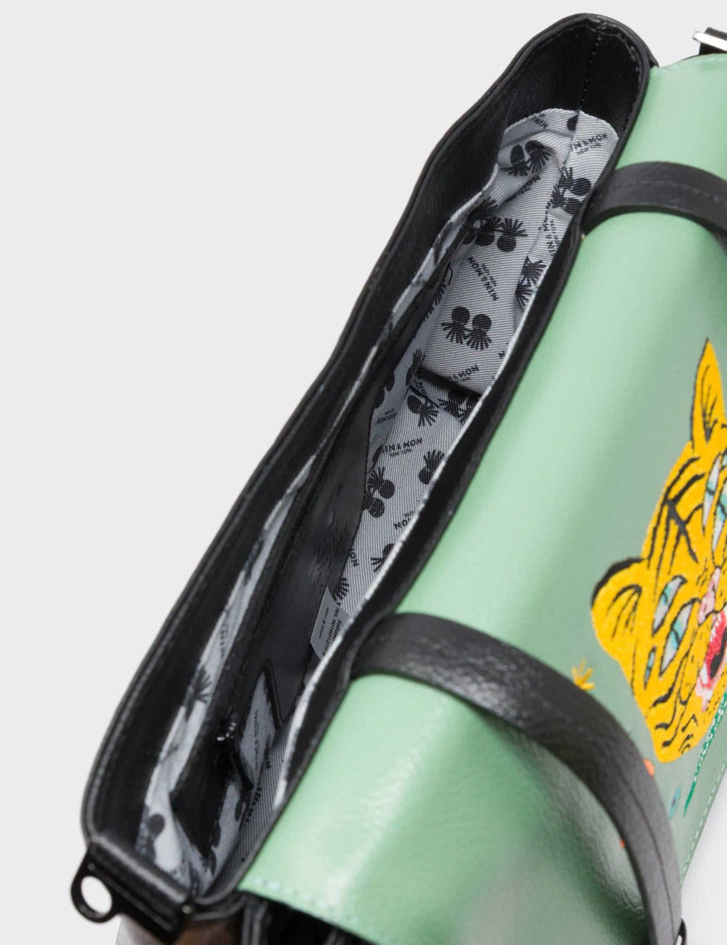 Victor Basil Green Reversible Small Messenger Bag - Happy Tiger Design