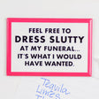 Feel Free To Dress Slutty Magnet is backordered and will ship as soon as it is back in stock.