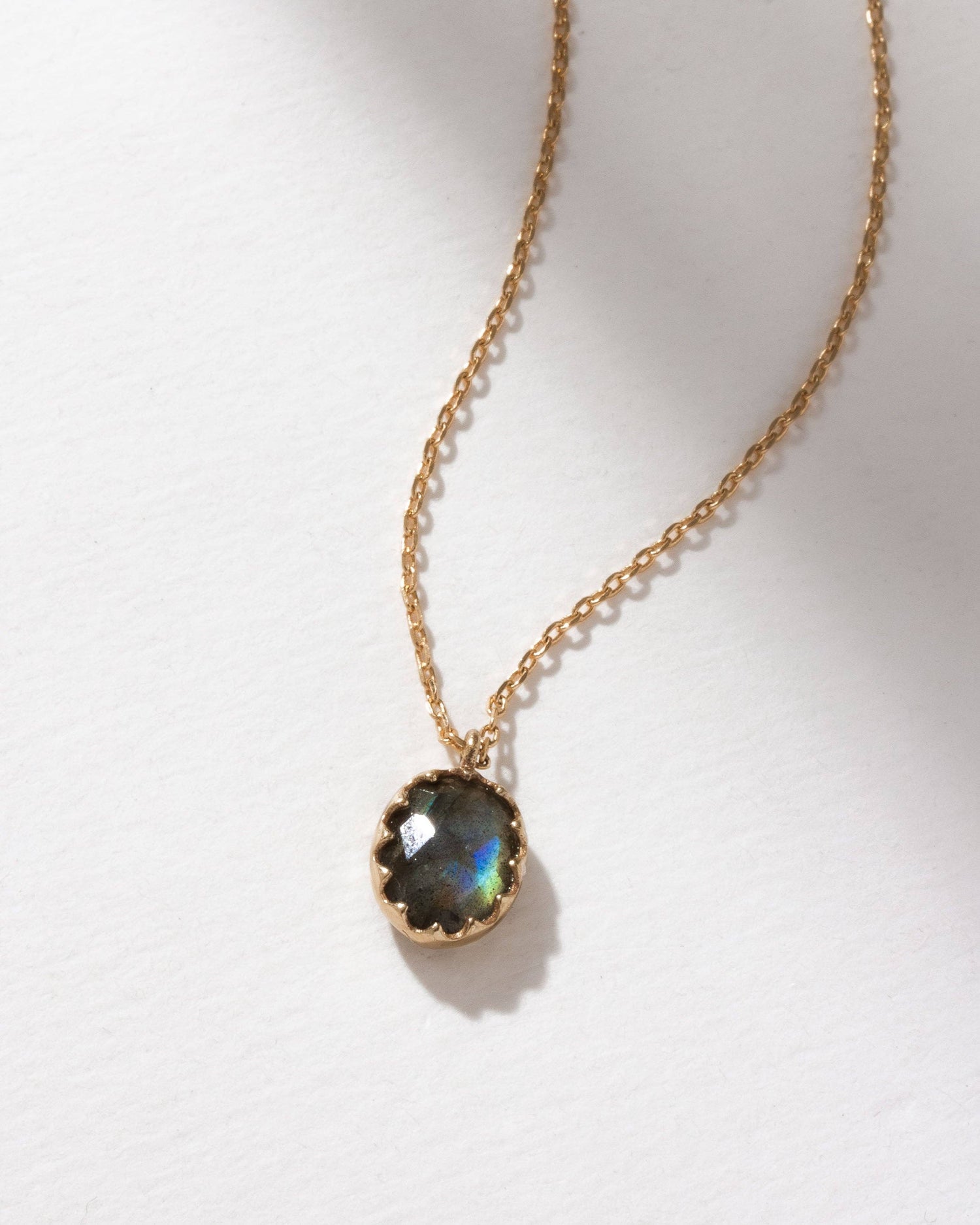 Featuring a hand-faceted labradorite gem renowned for their enchanting play of colors, this dainty necklace is perfect for adding a touch of celestial charm to any jewelry collection. This necklace can be worn solo for a minimalist look or layered with other pieces in one’s collection for a more personalized style. The Neptune's Orbit pendant allows wearers to create a storm and showcase their impeccable style.