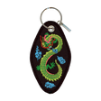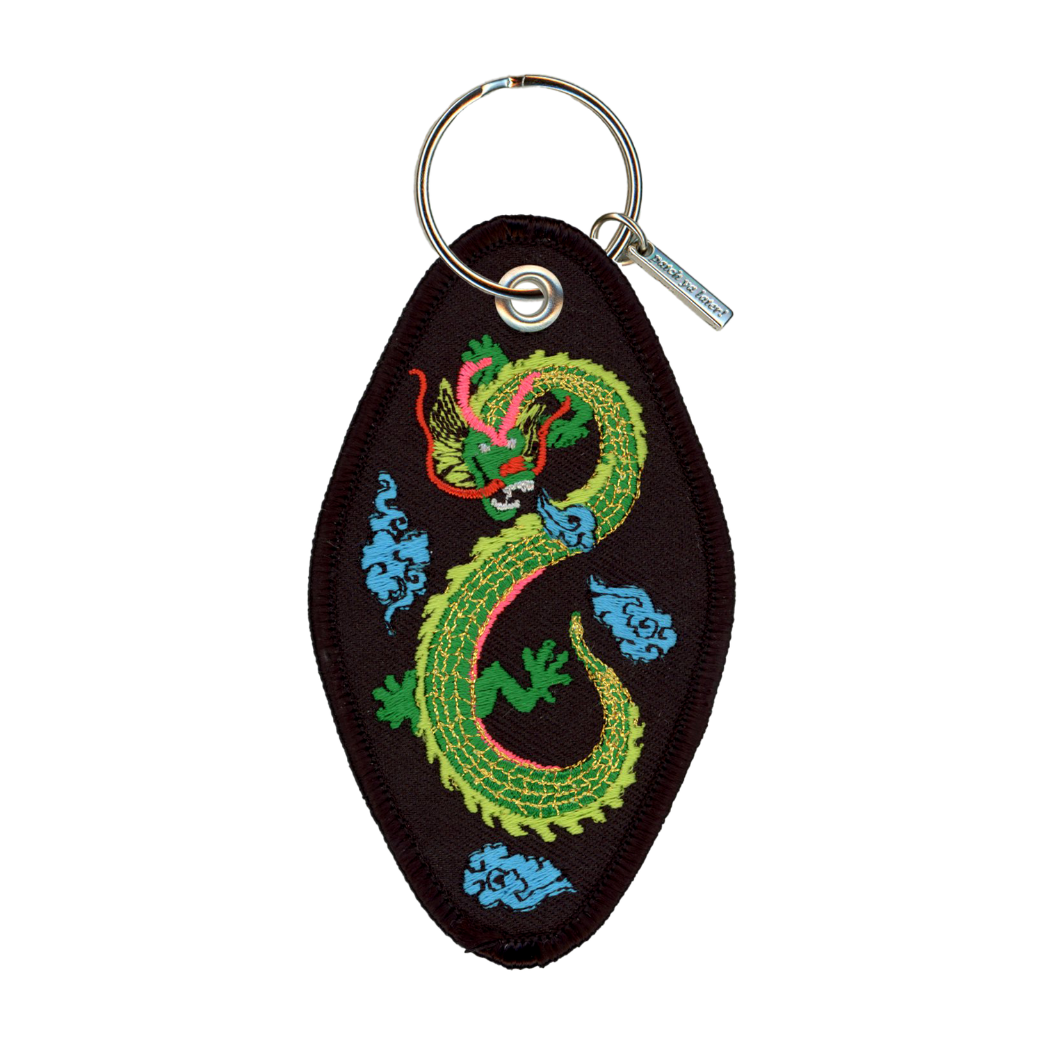 Embroidered patch style motel key chain.