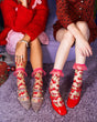 Sweet meets sassy in our Cherry Bow Ruffle Sheer Crew Sock — a playful pair designed to add a vintage-inspired touch to your look. Embroidered with juicy red cherries and dainty pink bows on a sheer base, and complete with a ruffle cuff for an ultra-girly finish.