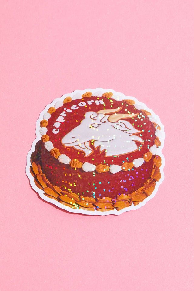 Holographic Laminate Sticker. Inspired by Wilton's 1973 Horoscope Cake Series, these stickers feature cakes dedicated to each zodiac sign.