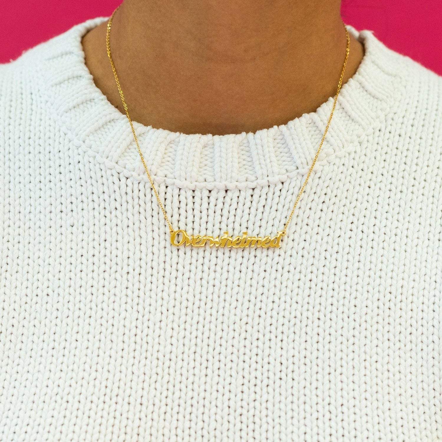 I’m all about transparency and I’m very overwhelmed so I thought you should know. Some days you just need to be treated with kid gloves for once. You may be overwhelmed, but you can still do it.  The nameplate measures 10 mm x 65 mm and the necklace itself can be worn at 40-45cm (about 16-20 inches). Necklaces are stainless steel with 18k gold plating or silver finish. Sensitive skin approved! An amazing christmas gift, stocking stuffer, and overall great present for the holidays.