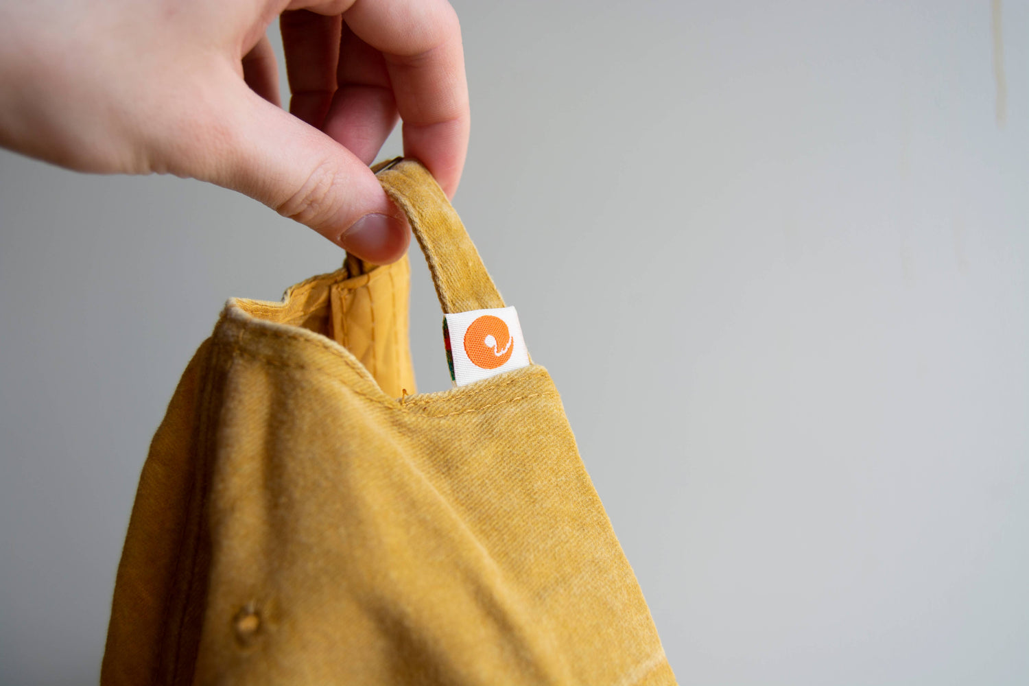 This mustard yellow vintage wash dad cap features a lovely embroidered white walking chicken with fun woven tag on the back.