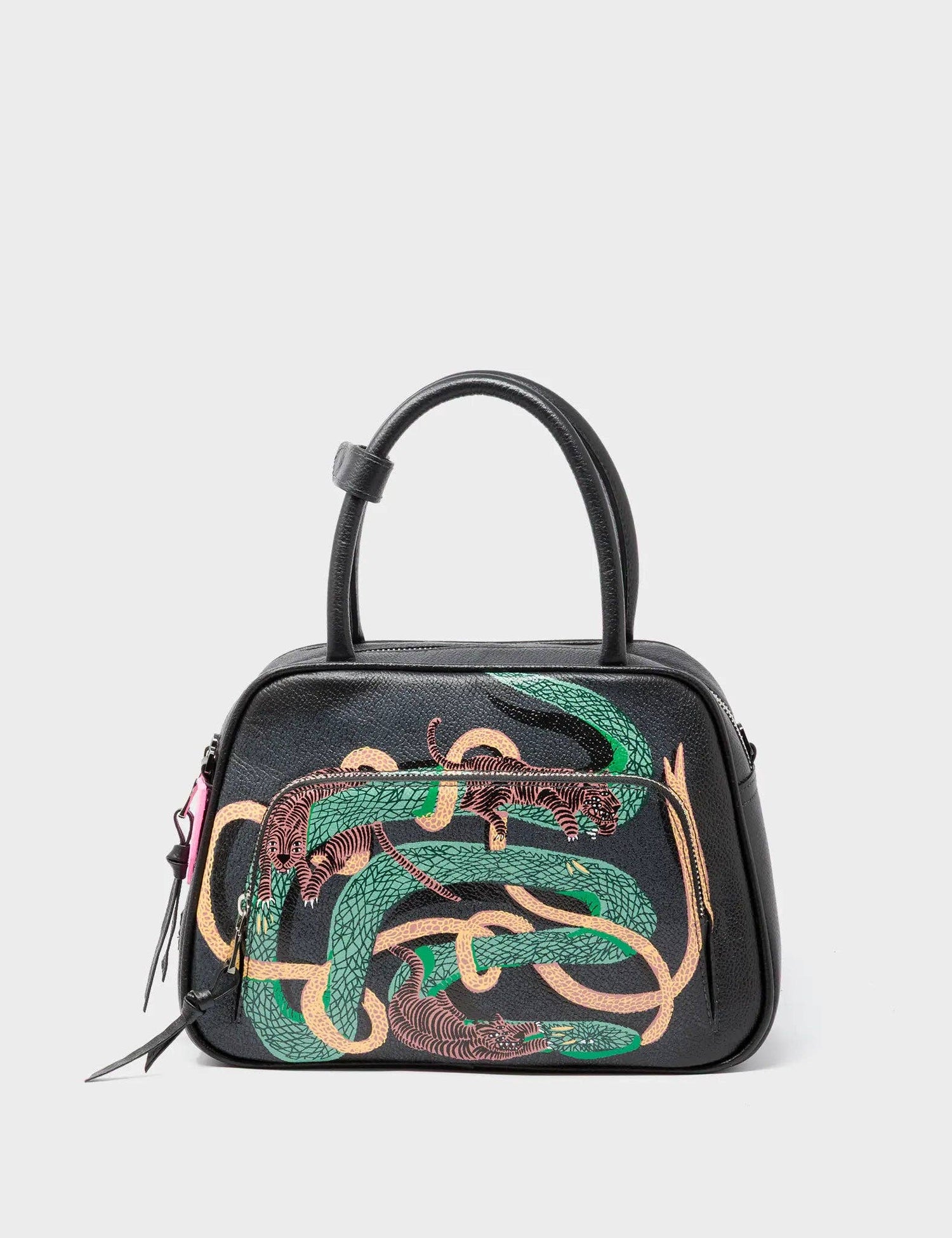 Marino Medium Crossbody Black Leather Bag - Tiger And Snake Print is backordered and will ship as soon as it is back in stock.